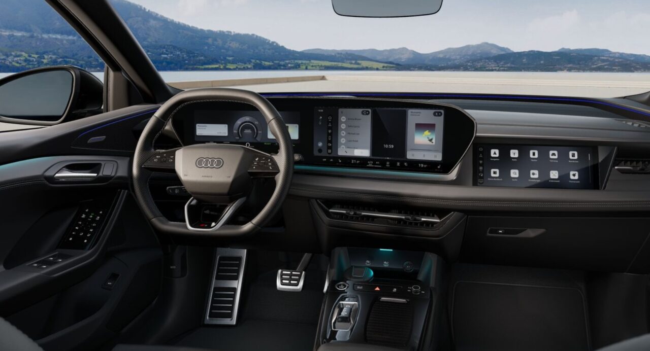 O interior destaca o conceito digital com foco no motorista. O chamado “Palco Digital” reúne o Audi Virtual Cockpit Plus de 11,9”, tela central MMI de 14,5” e display para o passageiro de 10,9”. O sistema inclui ainda head-up display com realidade aumentada e som premium Bang & Olufsen 3D de 705 W.