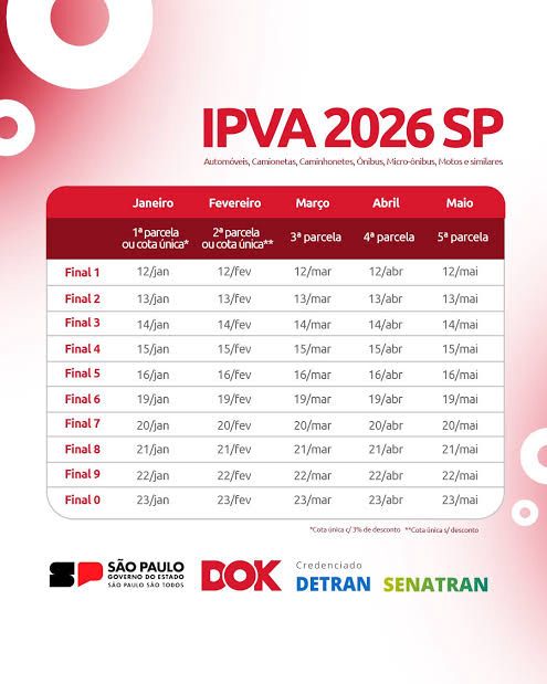 A partir de 2027, a cobrança voltará de maneira progressiva. O cronograma prevê alíquota de 1% em 2027, 2% em 2028, 3% em 2029 e, por fim, 4% em 2030, percentual equivalente à alíquota cheia aplicada aos veículos de passeio no estado.